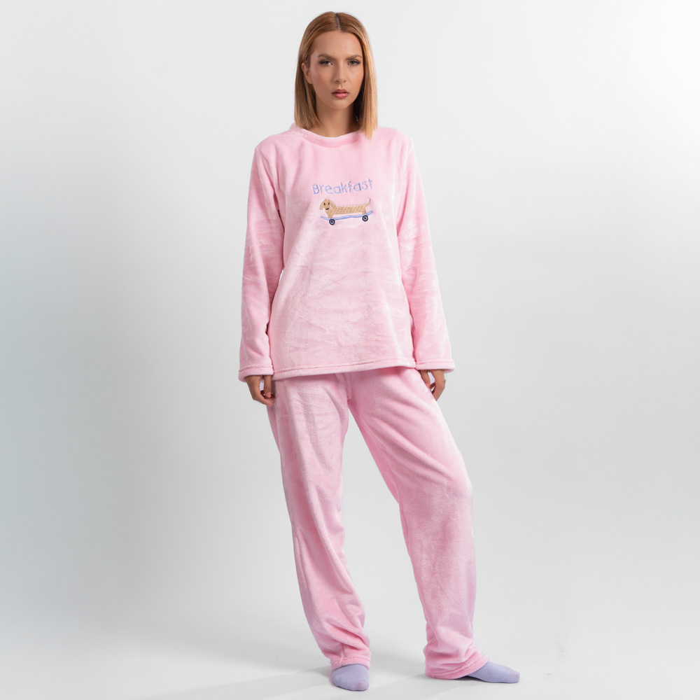 Esta pijama ha sido elaborada en material térmico hipoalergénico, cómodo para usar cada noche al dormir y tener un descanso placentero, pijama térmica con buzo bordado de perro salchicha, cuello redondo, pantalón con resorte en la cintura, material suave y cómodo, una prenda ideal para estar en la comodidad de tu hogar, perfecta para plan de vacaciones, compartir en familia, fiesta de pijama, modelo único y delicado. Disfruta cada noche con el mejor estilo de pijamas térmicas, rompe lo tradicional y aburrido de las prendas para dormir.